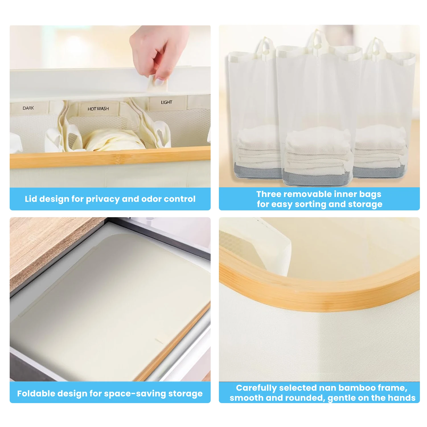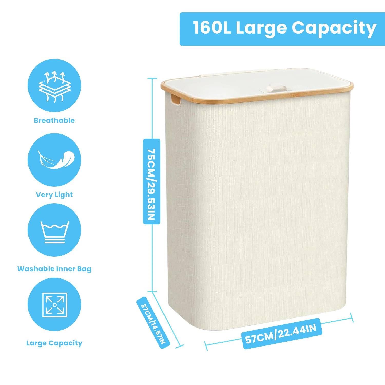 Laundry Basket 100L&160L, Laundry Hamper Slim with Removable and Washable Inner Bag, Laundry Baskets with Handles